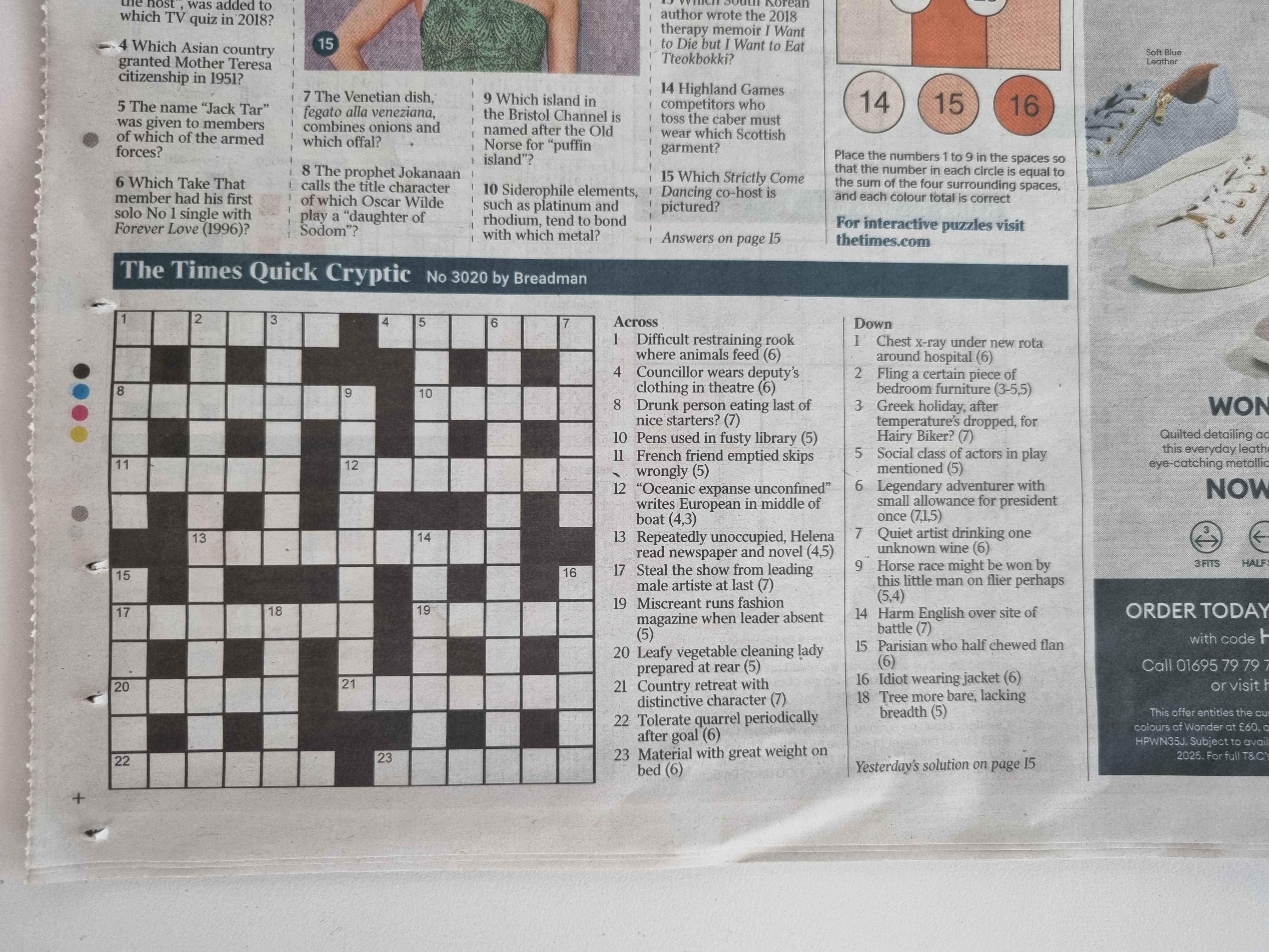 Izzy mostly solves the Cryptic in the Metro newspaper, and loves going on Minute Cryptic every day.