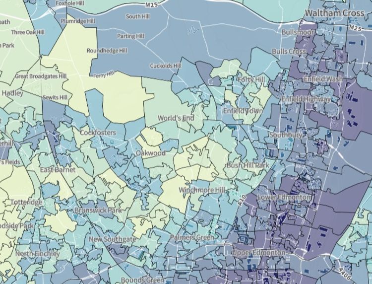 Great Cambridge Road (the A10) slices centrally through the London Borough of Enfield. To the west side of the road, the leafy green, affluent suburbs of Winchmore Hill, Oakwood and Cockfosters. On the east side, Edmonton, Ponders End and Brimsdown- areas that rank in the most deprived 2% of neighbourhoods in the country. These two sides of Enfield have coexisted for decades, but there’s a deepening chasm of inequality pushing them ever further apart.