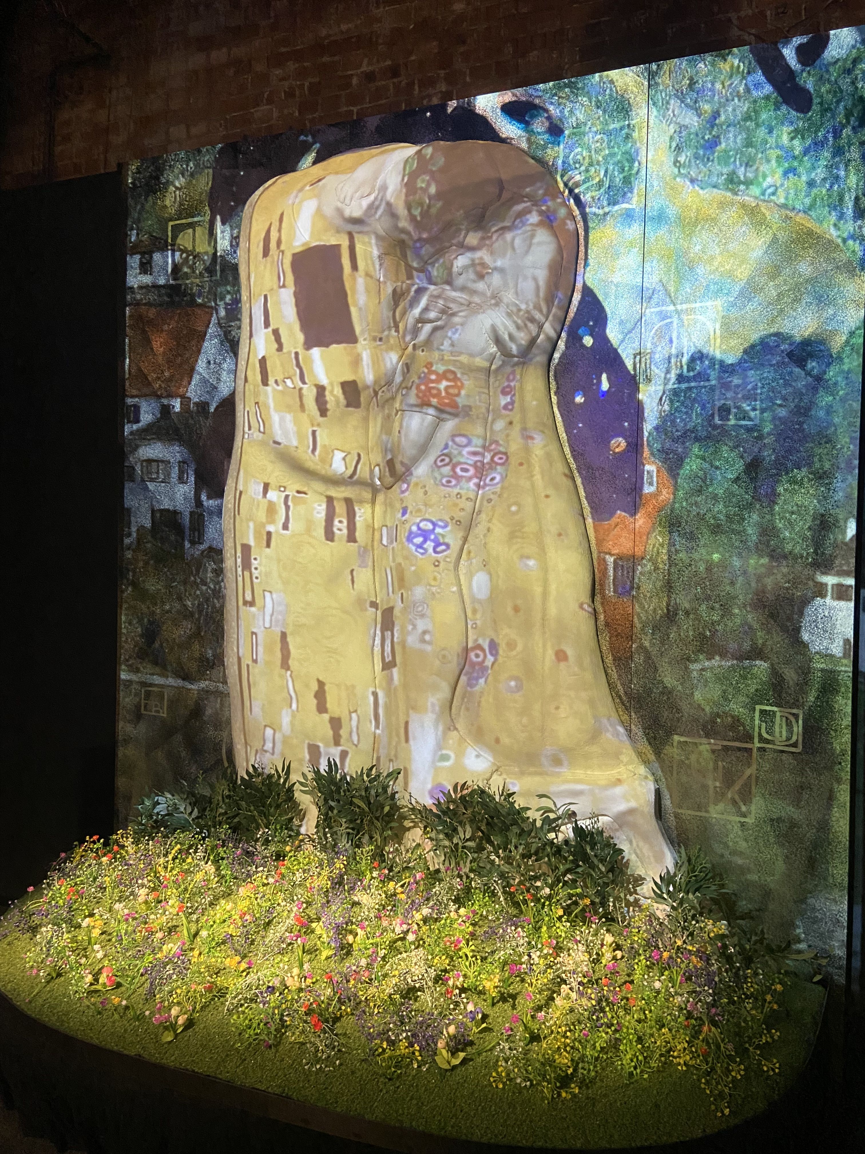 A moving projection and soundscape of Klimt's most infamous painting 'The Kiss' at the Klimt Expo.