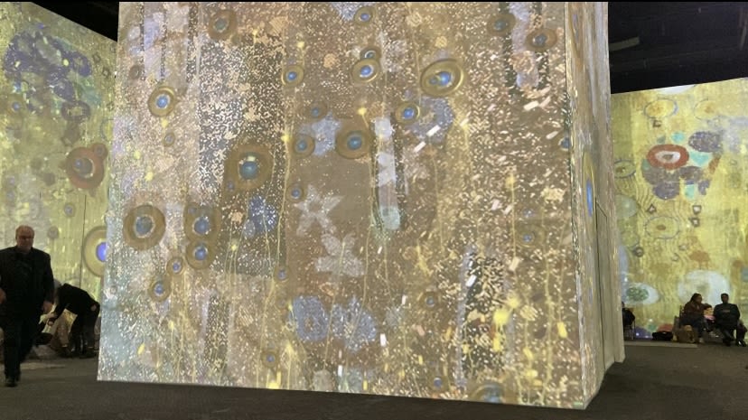 The second room is a stark contrast, filled with a sensory overload of Klimt's infamous golden colour palette accompanied by dramatic music. The soundscapes and projections allow Klimt's most famous paintings to come to life across the walls. Looking around the room, the 360° experience had not summoned the Instagram obsessed demographic I had expected, but had drawn in a more family and senior-oriented crowd.
