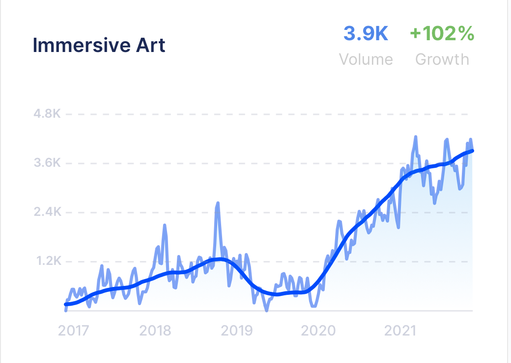 This trend is reflected in trending search data by Glimpse, a consumer behaviour analysis trending platform, which shows searches for the term 'immersive art' has increased by 102% in the last year globally.