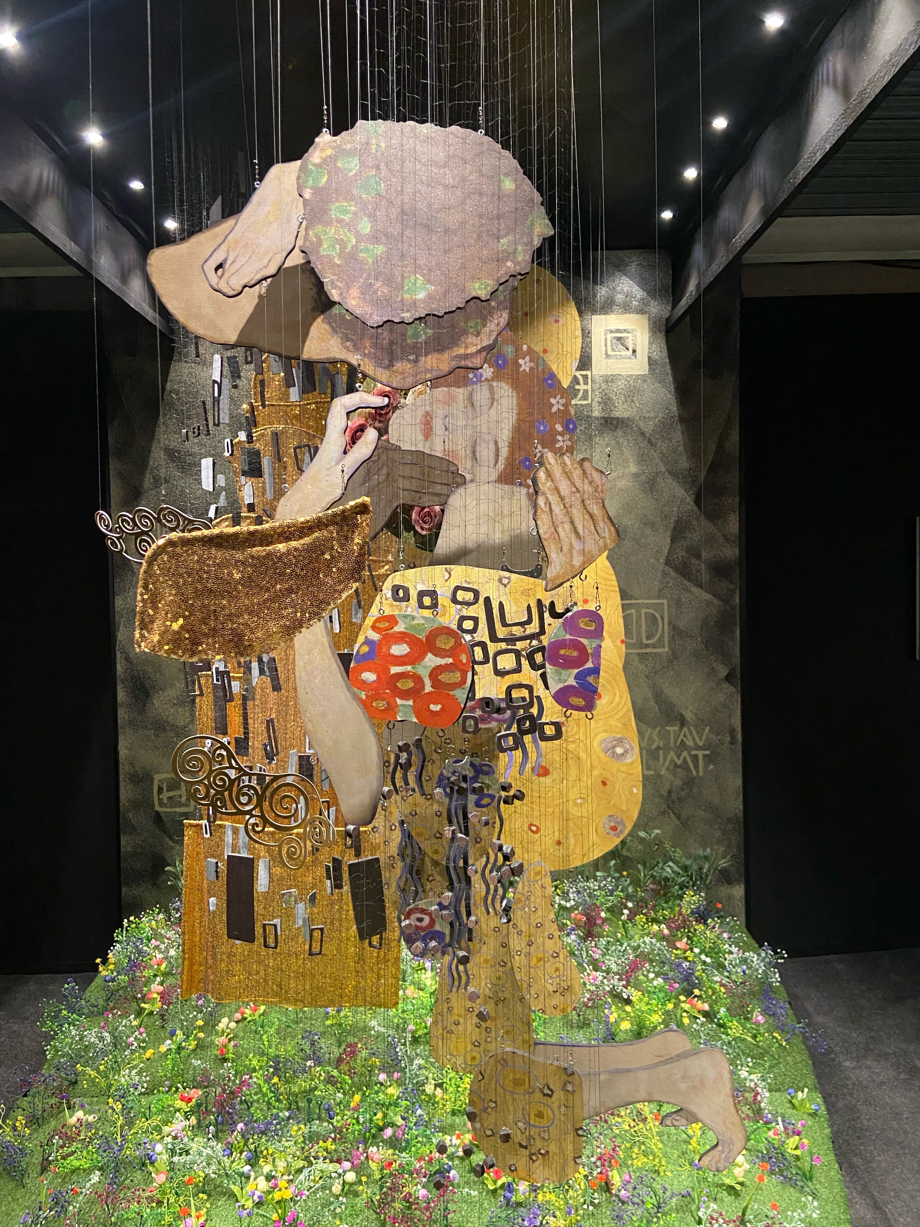 A 3D collage of 'The Kiss' in the first room of the Klimt Expo