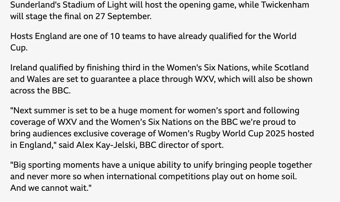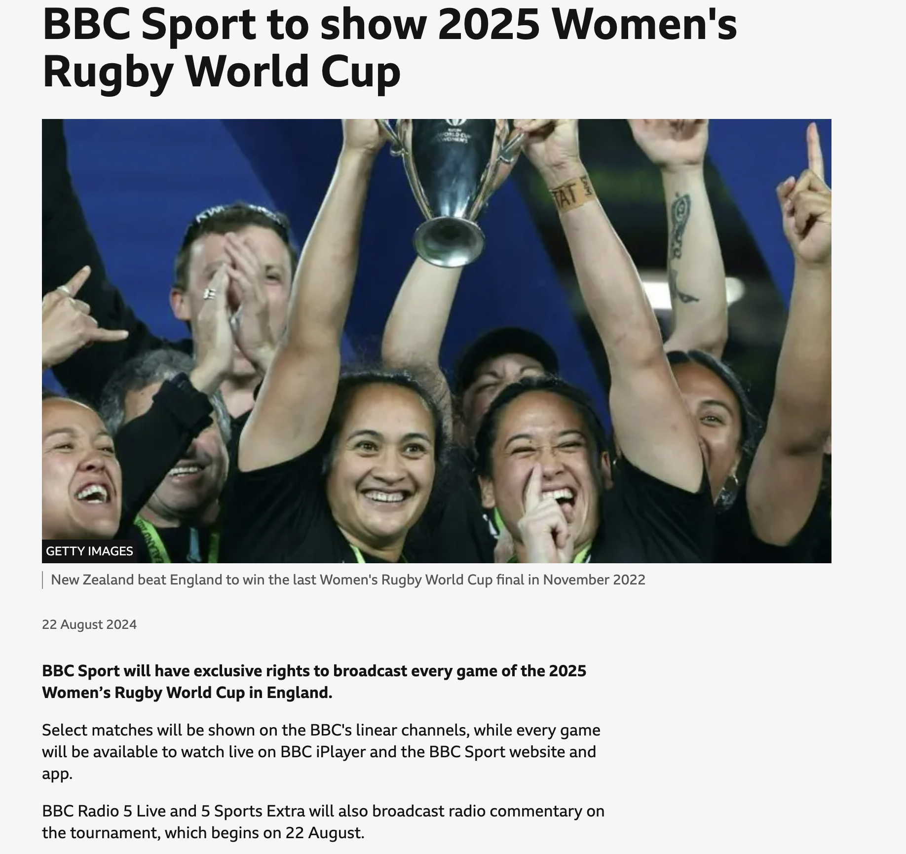 Last month BBC Sport announced an exclusive UK rights deal with World Rugby for live coverage of Women's Rugby World Cup.