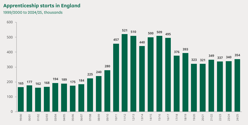 At the beginning of the Cameron-Clegg coalition, apprenticeships were on the increase compared to the last Labour government, according to the Department of Education. The number of people partaking in an apprenticeship dramatically fell in 2017/18 and has fluctuated around similar numbers ever since.