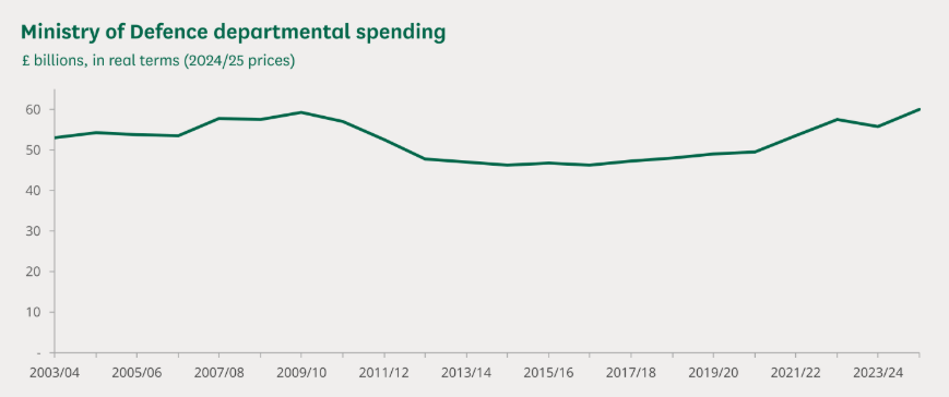 Real-terms defence spending fell by 22 per cent between 2009 and 2017, under the governments of David Cameron and then Theresa May. Specifically, from around £59.2 billion in 2009 to £46.2 billion in 2017 (prices have been adjusted to 2024/25 levels). It began to significantly rise during the Johnson, Truss and Sunak cabinets, according to data from the Ministry of Defence and the Treasury.