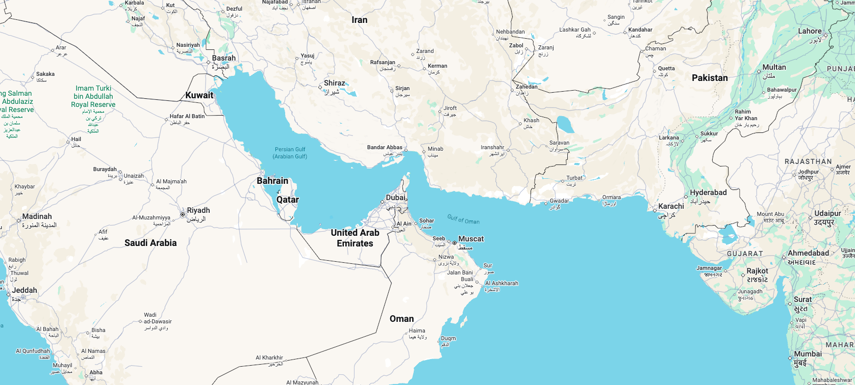 The Strait of Hormuz lies between the Persian Gulf and the Gulf of Oman, providing the only sea passage from the Persian Gulf to the open ocean, making it one of the world's most strategically important choke points. Iran lies on its north coast, and around 20 per cent of the world's liquefied natural gas and 25 per cent of seaborne oil trade passes through the strait annually.