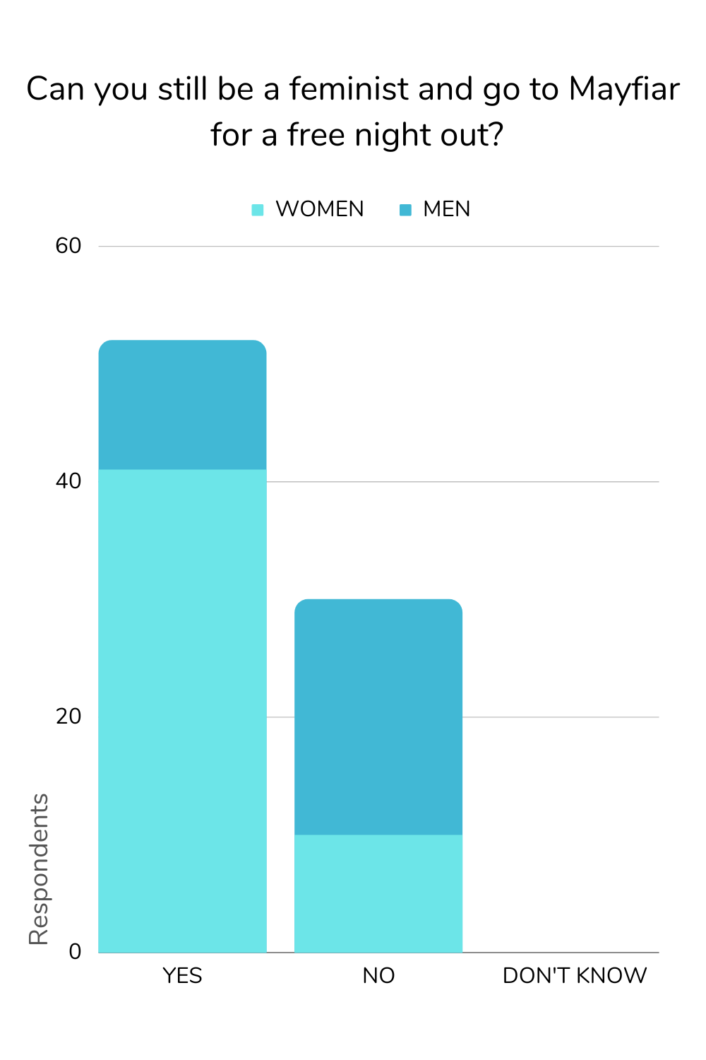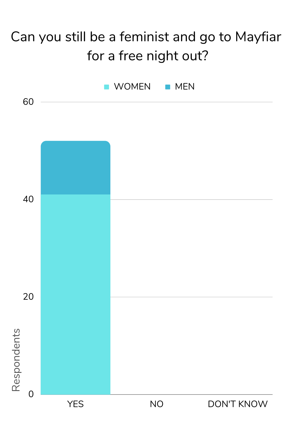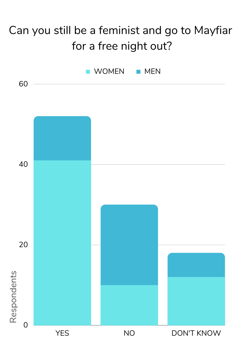 Only 16% of women found feminism and Mayfair clubs incompatible, compared with a whopping 54% of men.