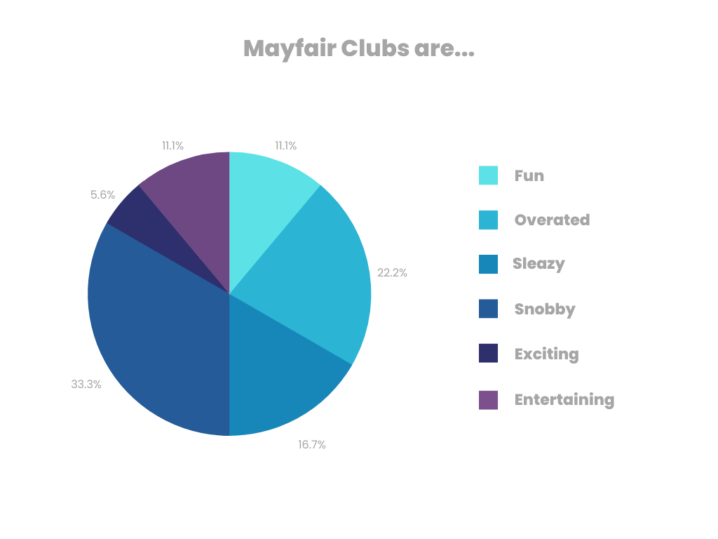 A Surverymokney questionaire revealed that most feel Mayfair clubs are snobby, closely followed by overated.