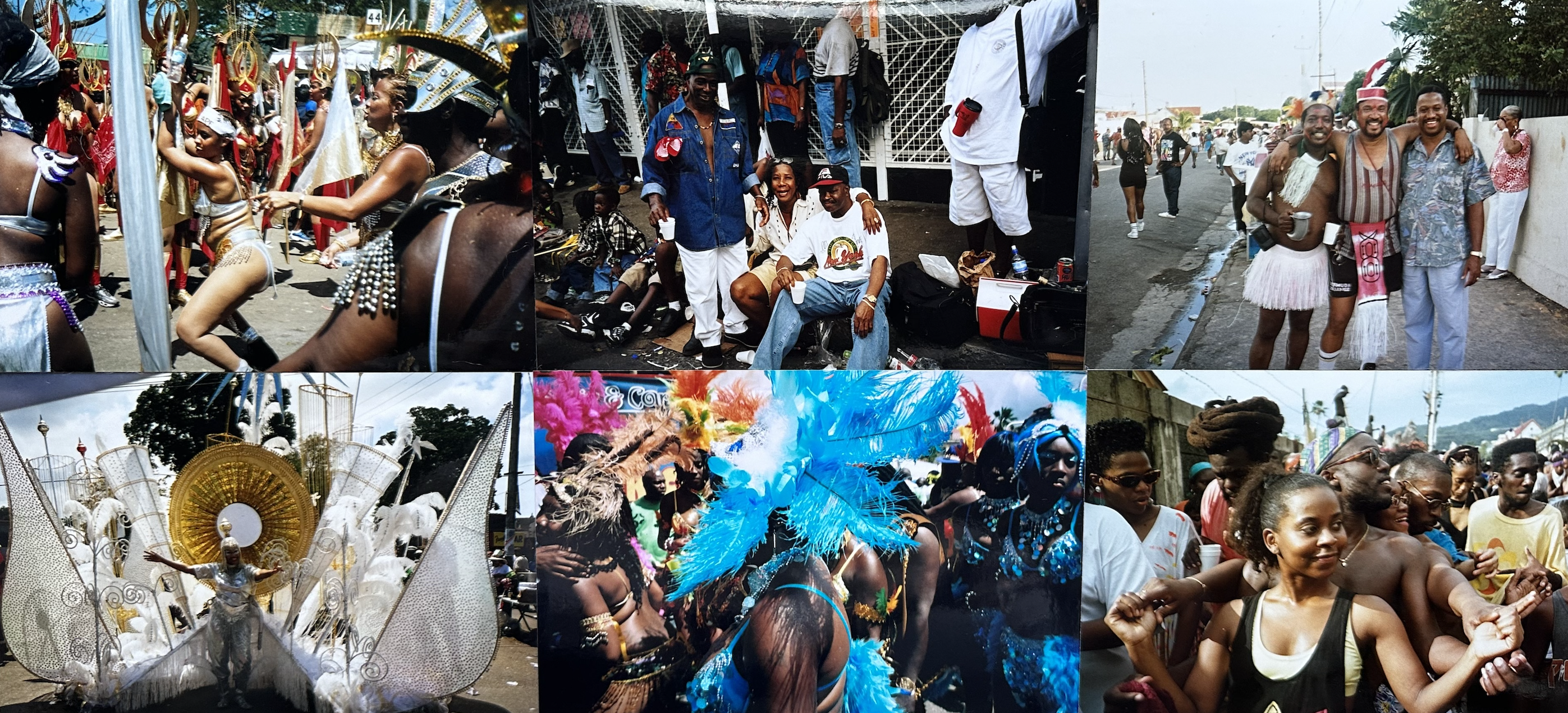 A collection of images of Carnival in Trinidad, taken by my grandad (top right with the red hat)