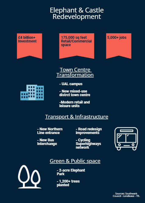 In 2002, the Greater London Authority (GLA) identified Elephant & Castle as an “opportunity area” for growth, setting the stage for a large-scale overhaul.