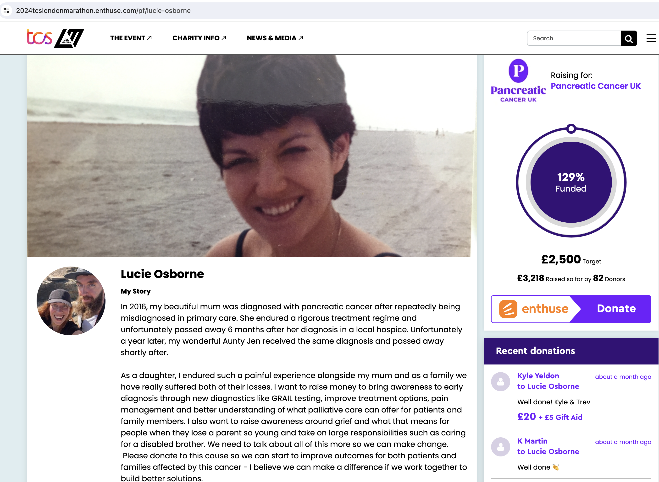 My sister-in-law Lucie's reason for running the 2024 London Marathon.