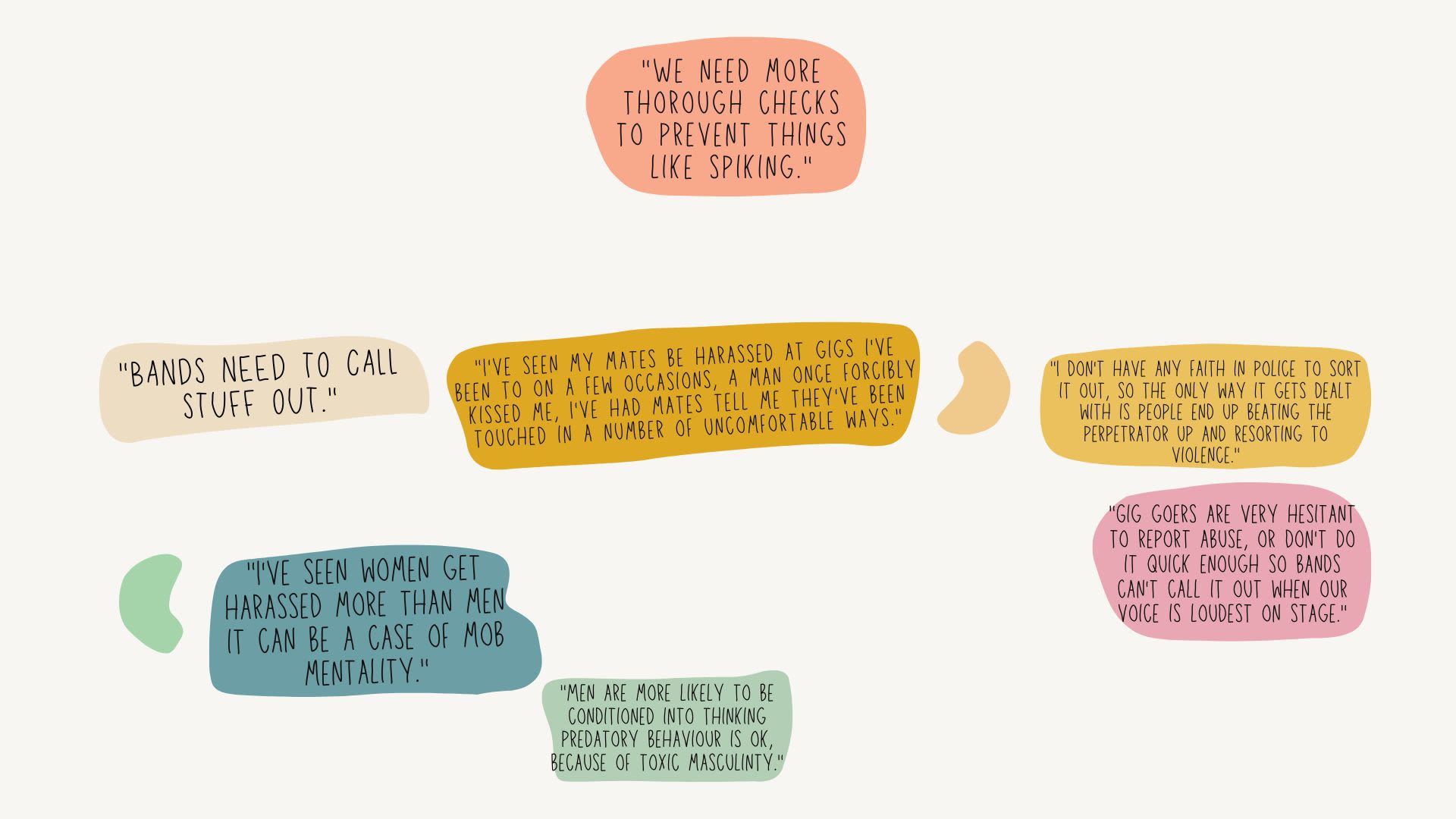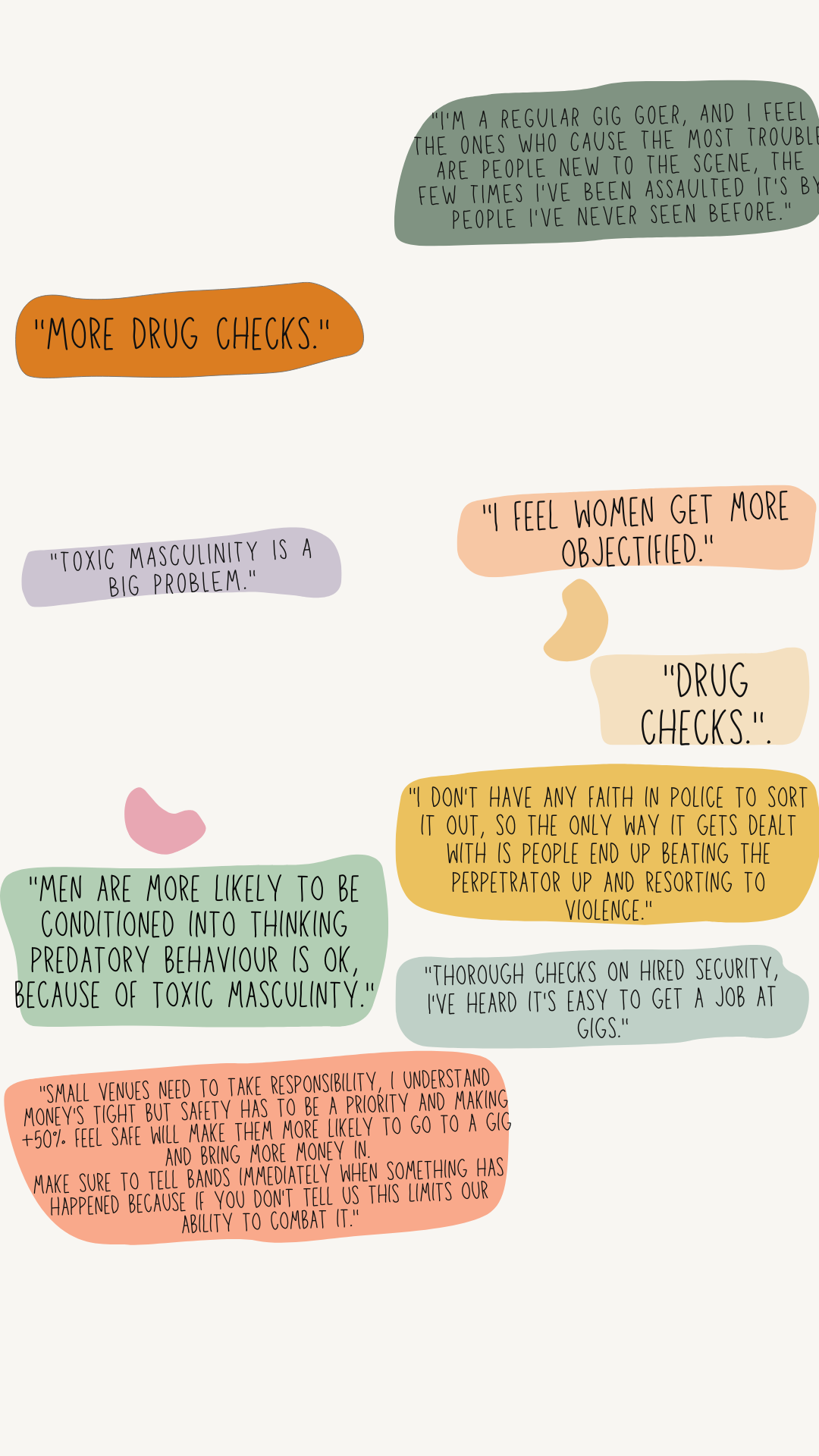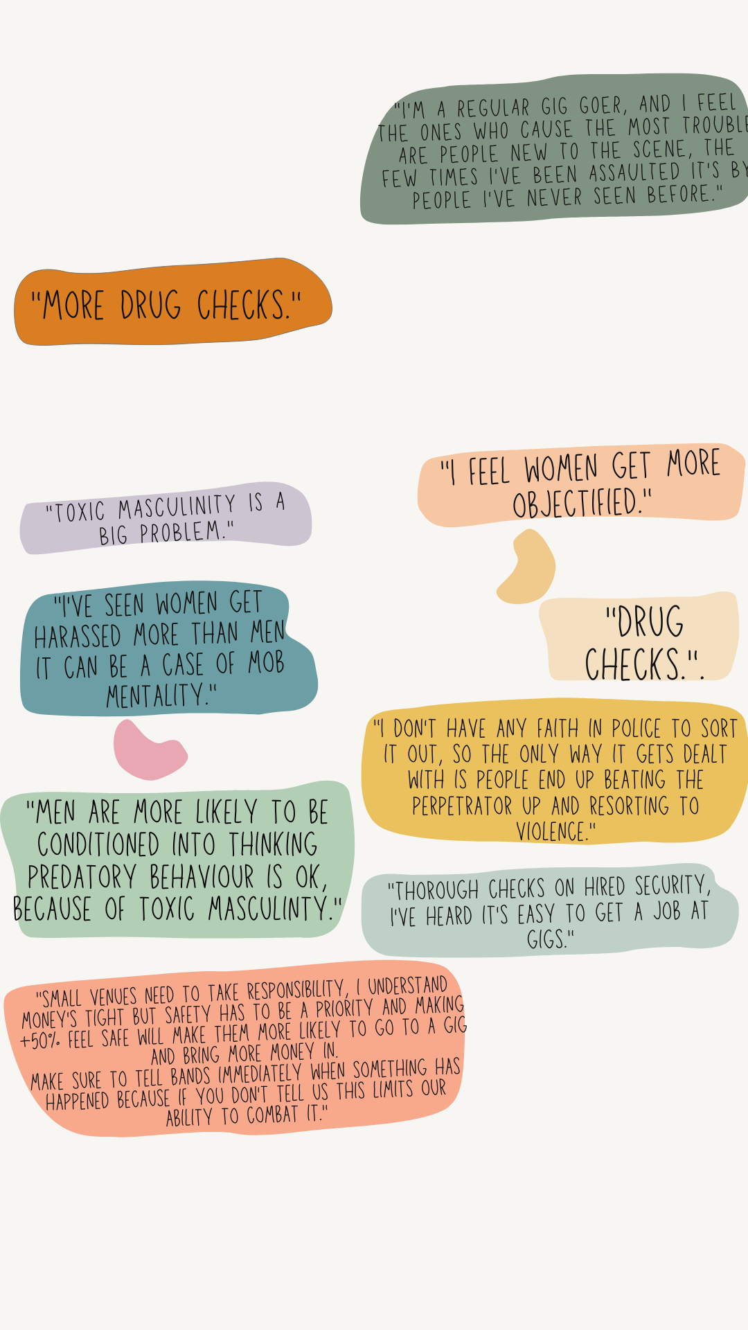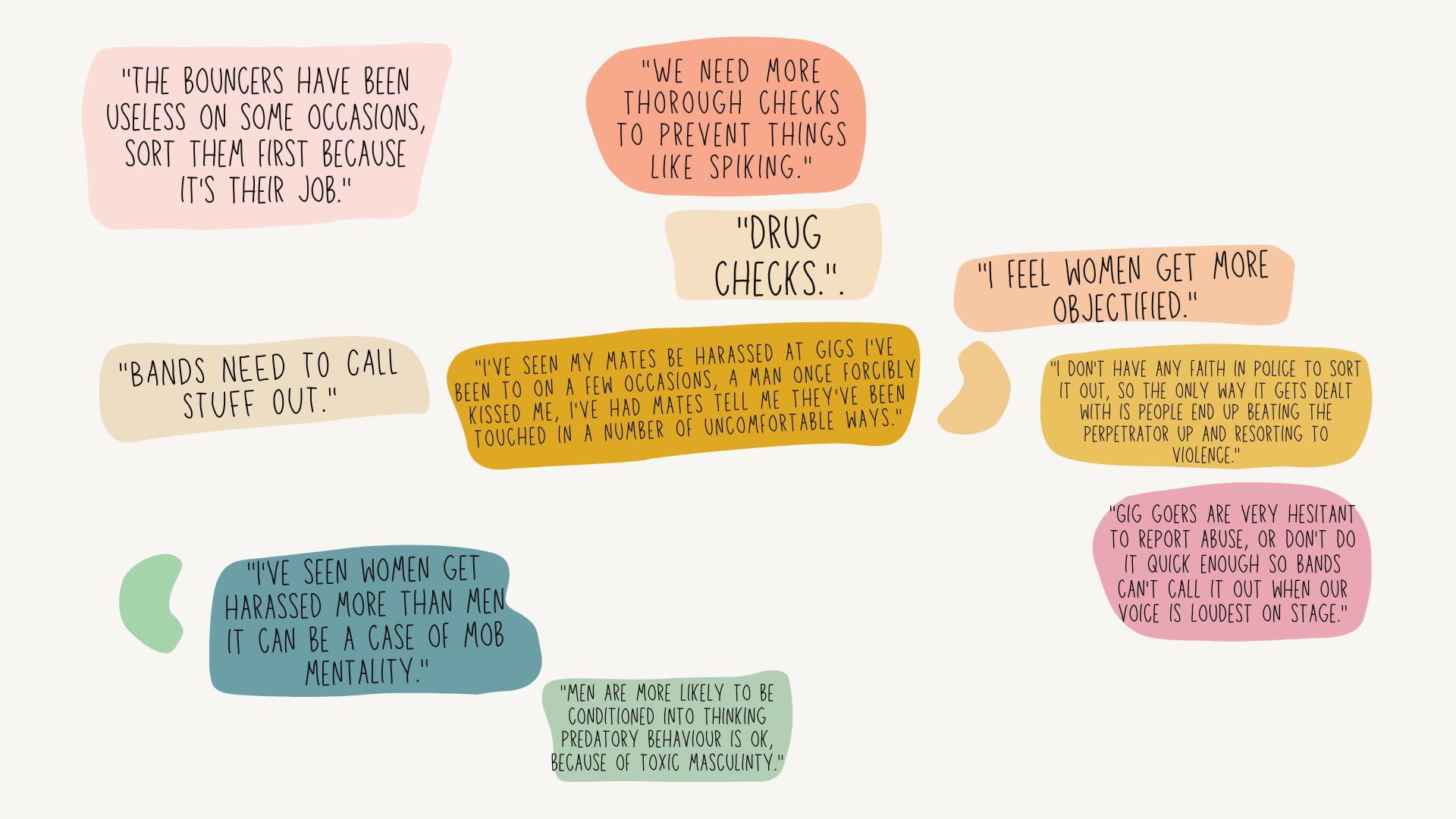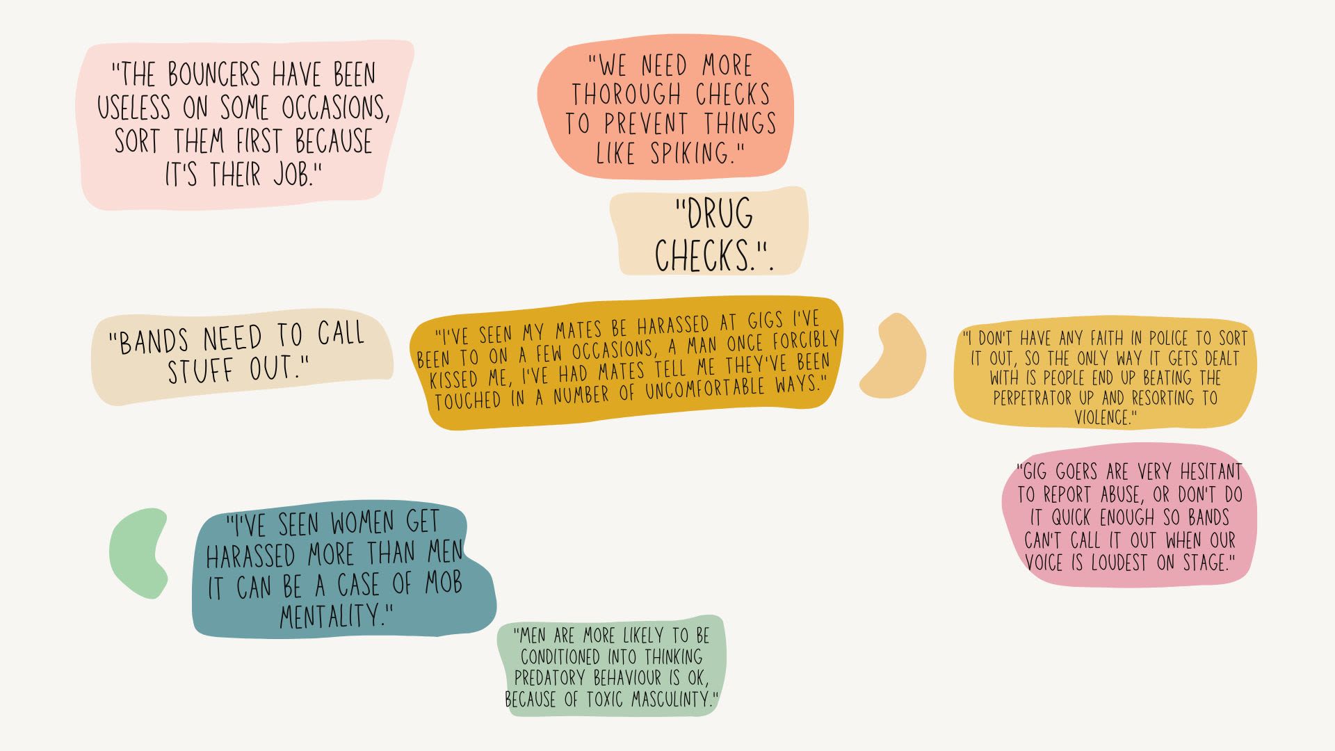 From my study, I also found that many gig goers don't feel safe at live music events, or feel that there is anything in place to protect them if something happened.