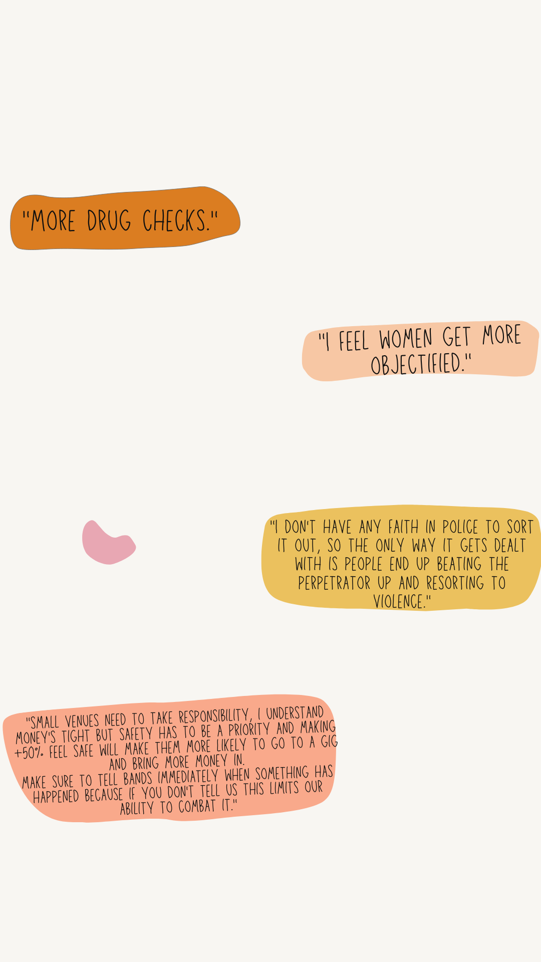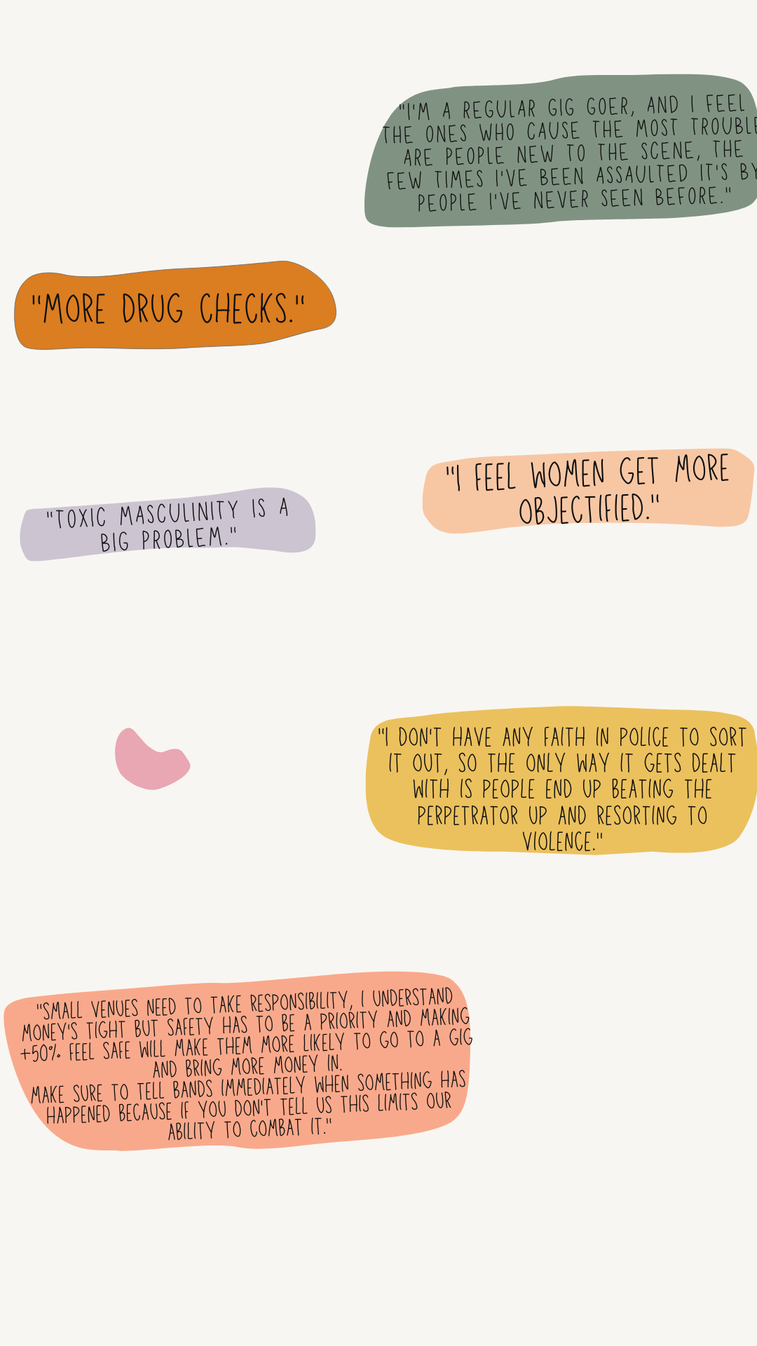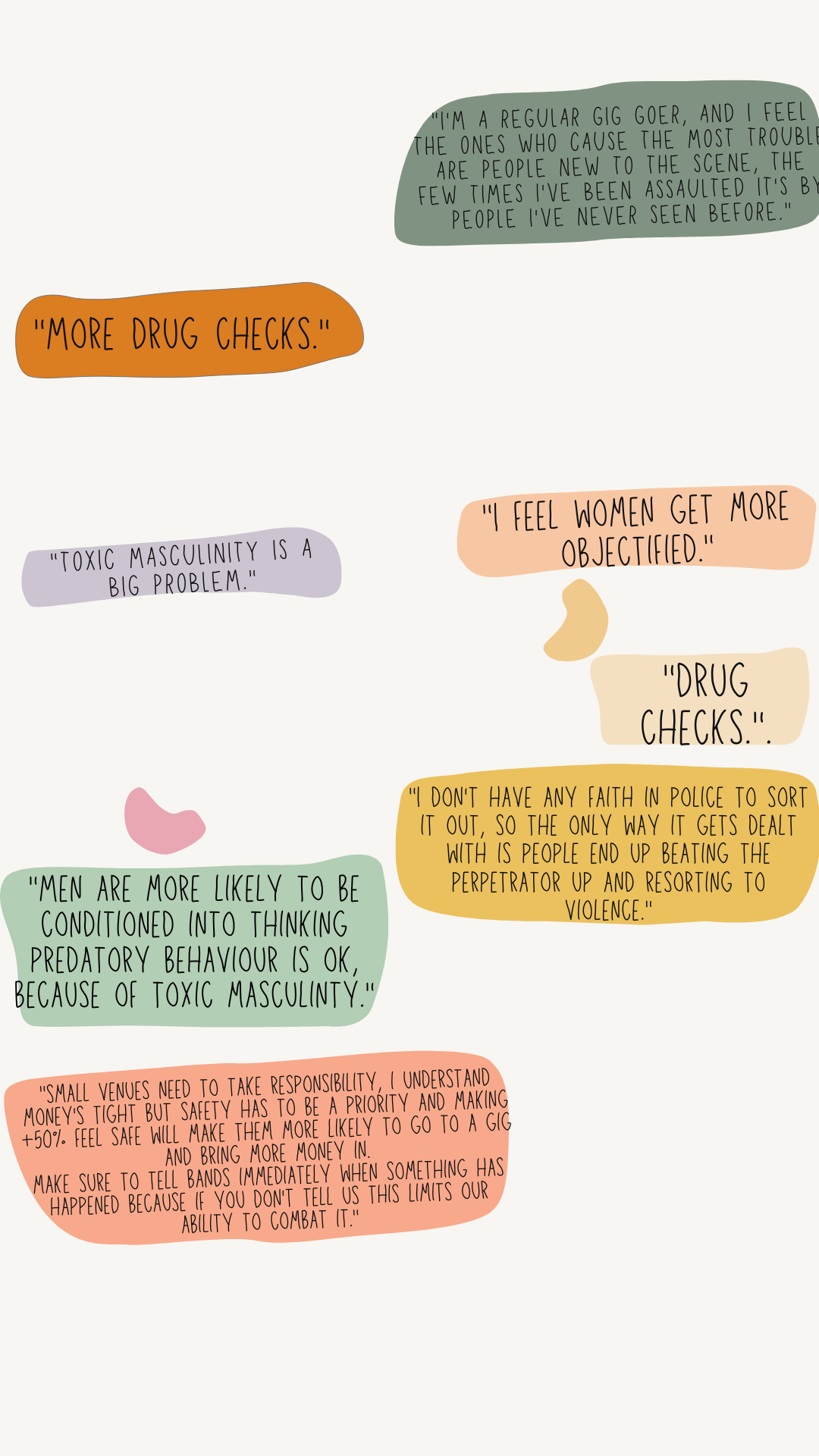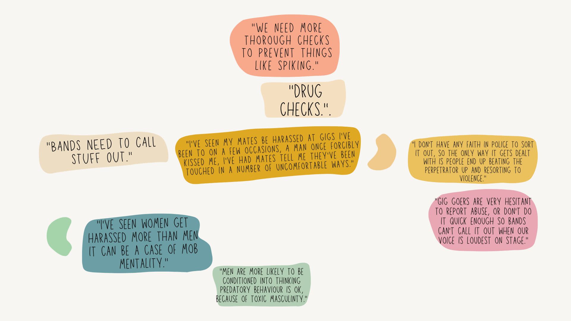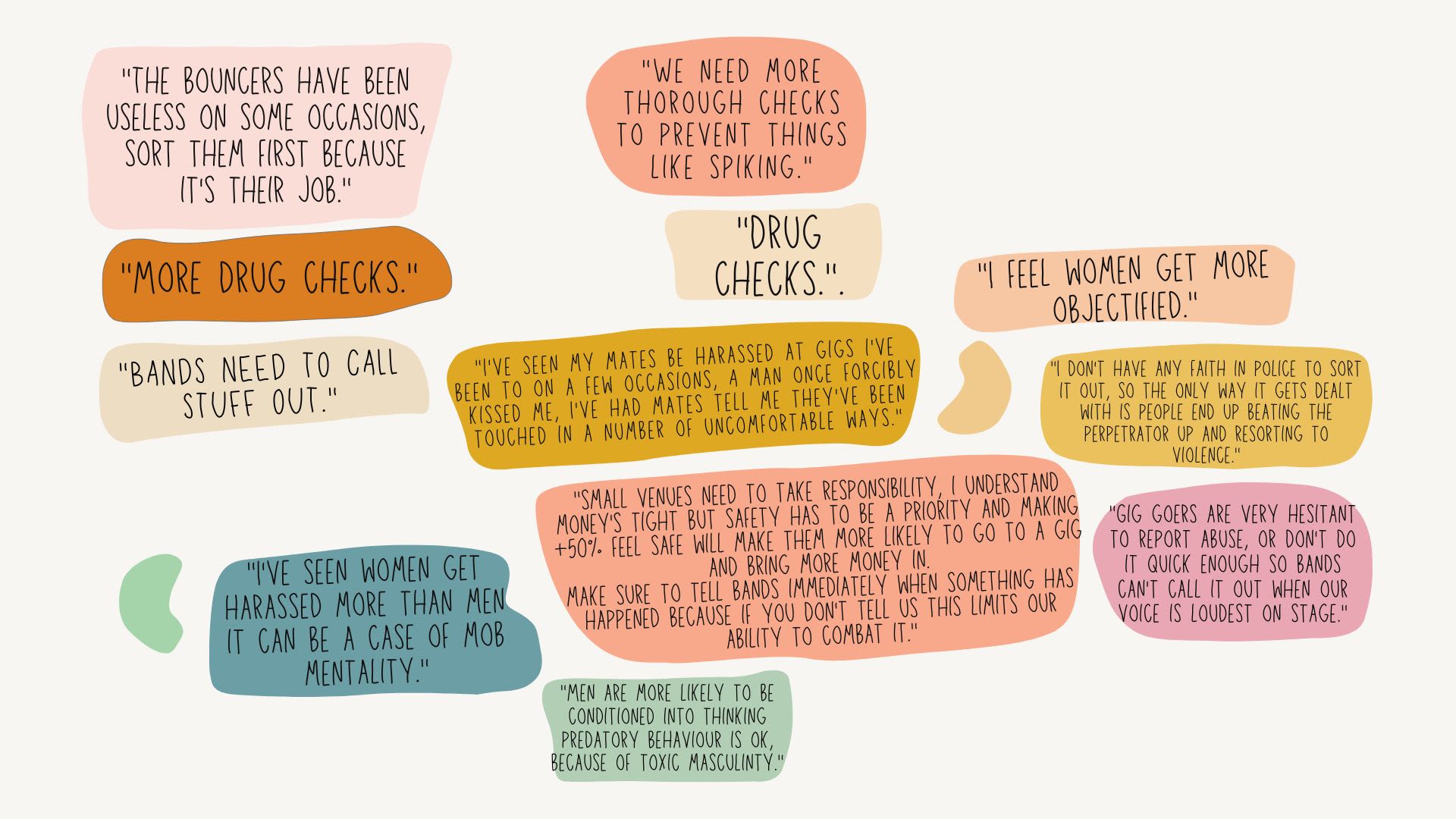 From my study, I also found that many gig goers don't feel safe at live music events, or feel that there is anything in place to protect them if something happened.