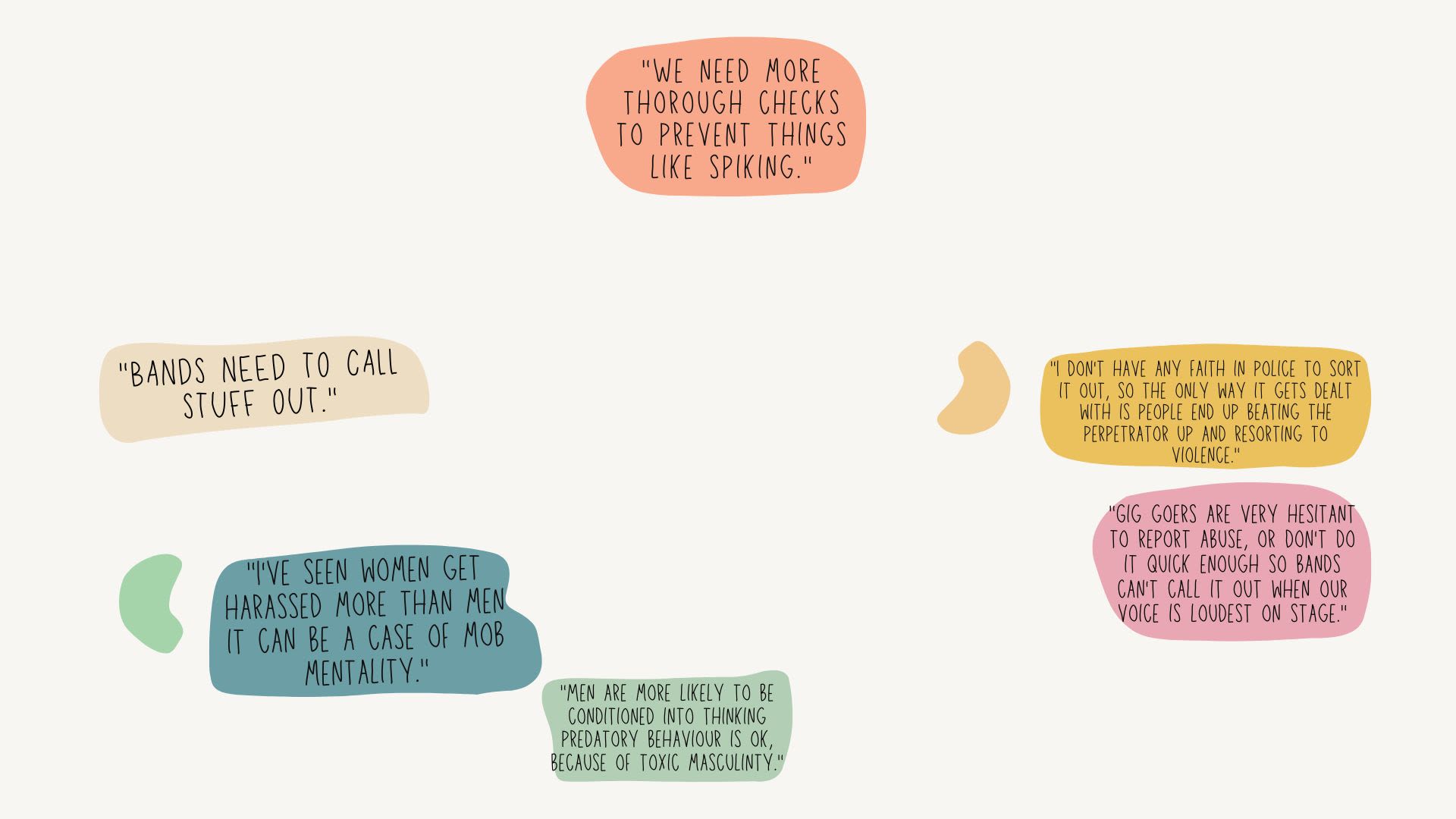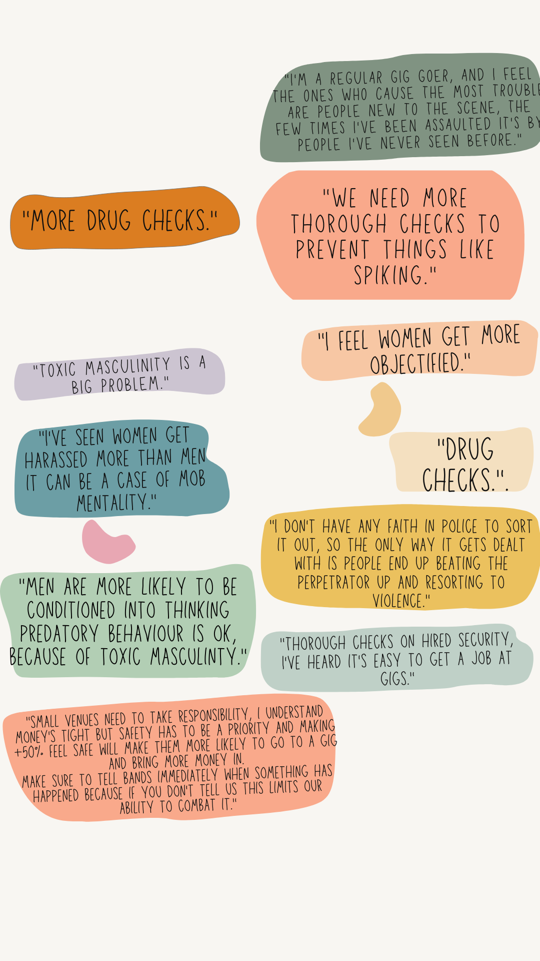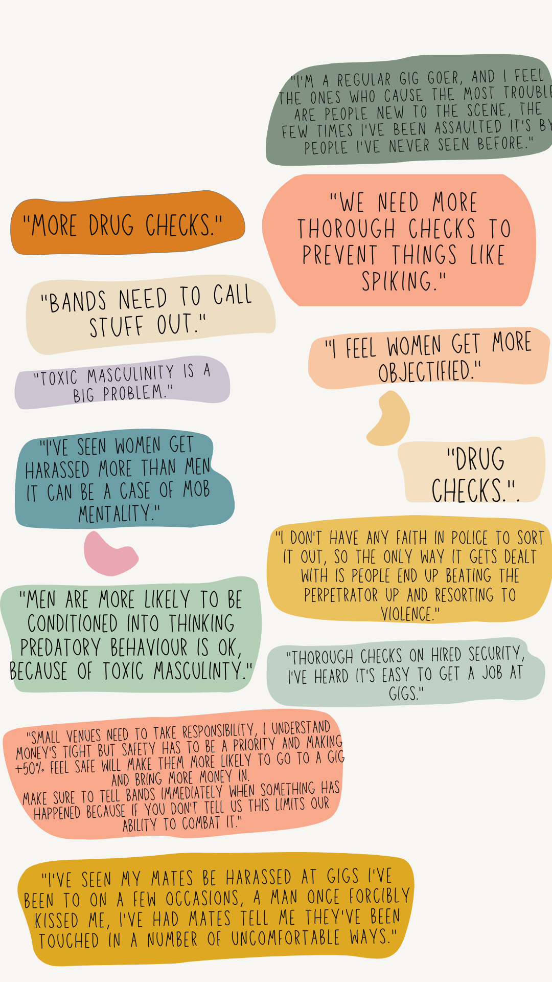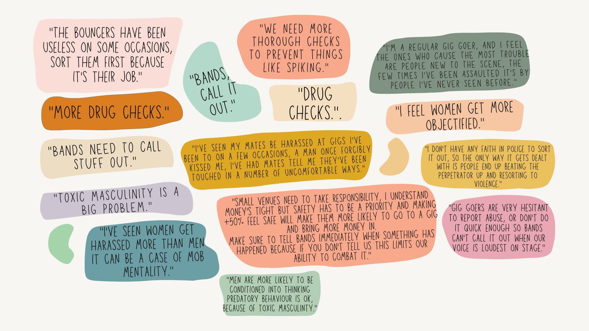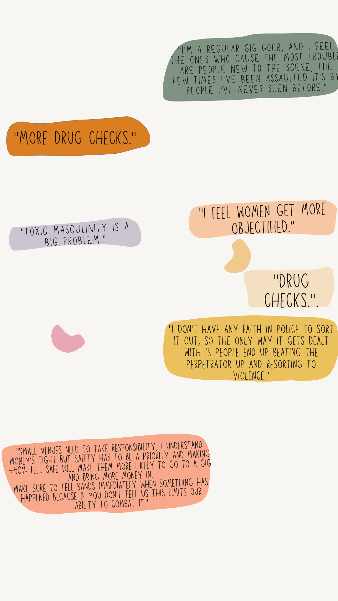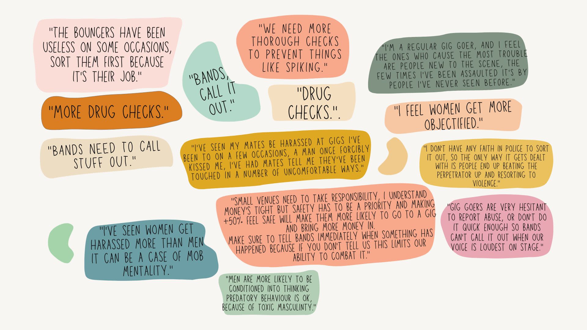 From my study, I also found that many gig goers don't feel safe at live music events, or feel that there is anything in place to protect them if something happened.