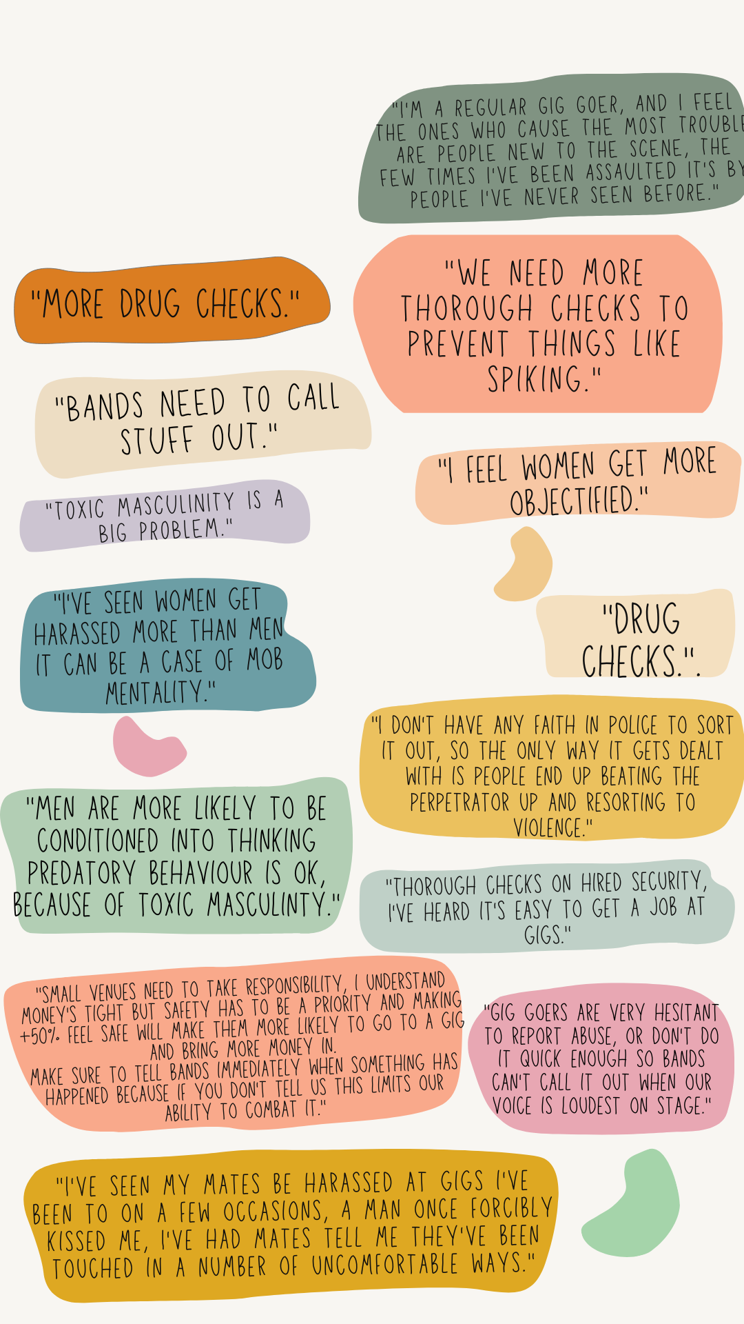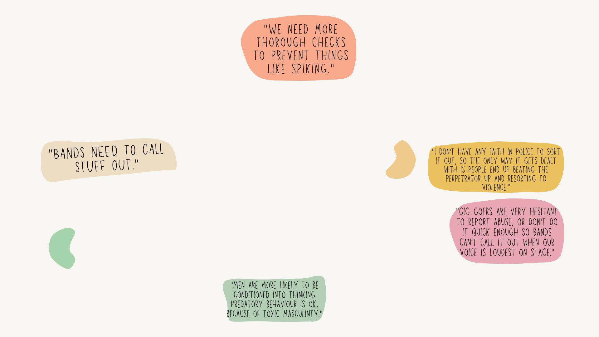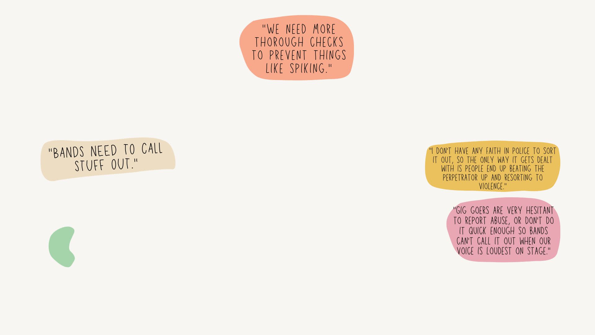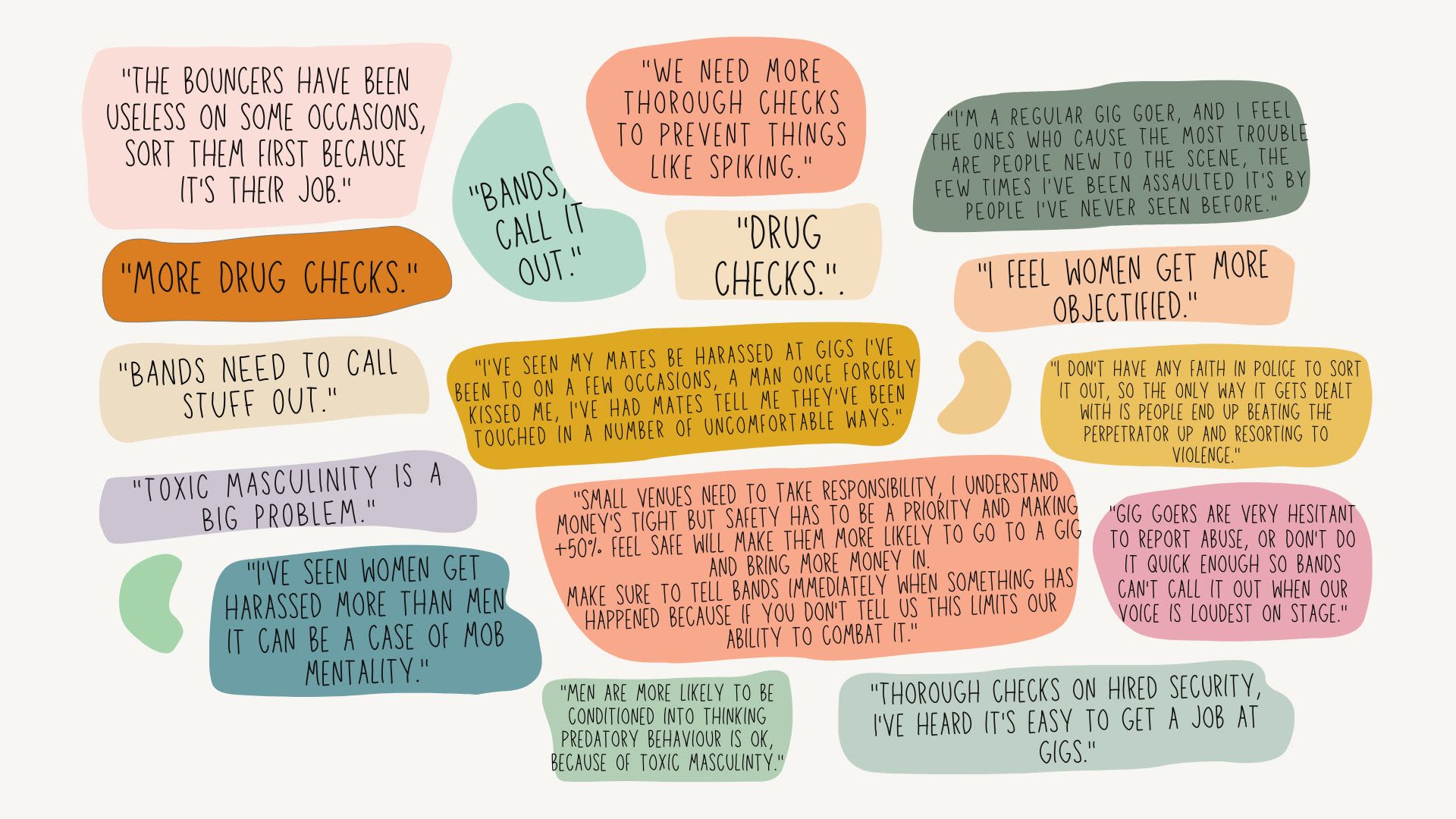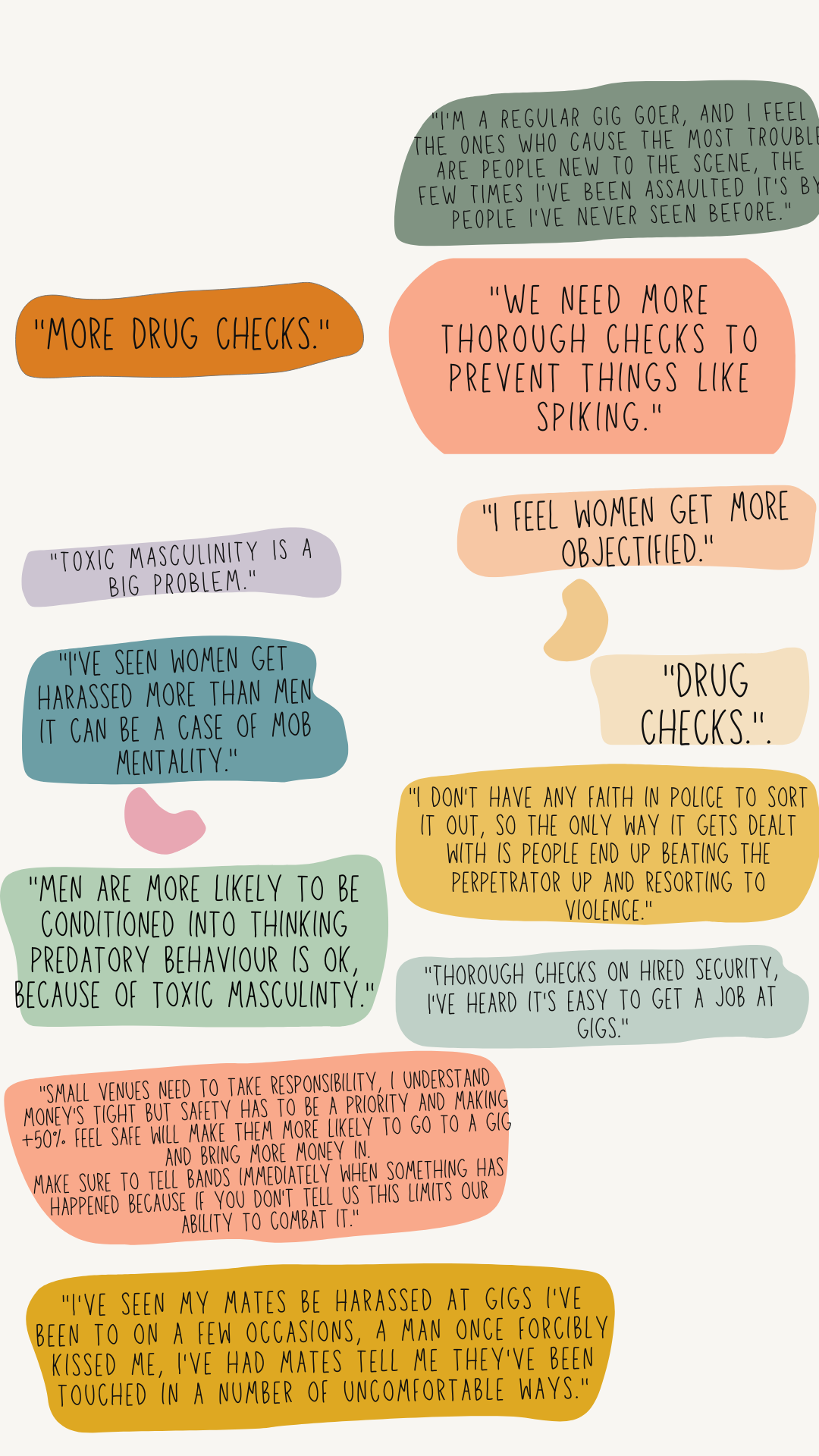 From my study, I also found that many gig goers don't feel safe at live music events, or feel that there is anything in place to protect them if something happened.