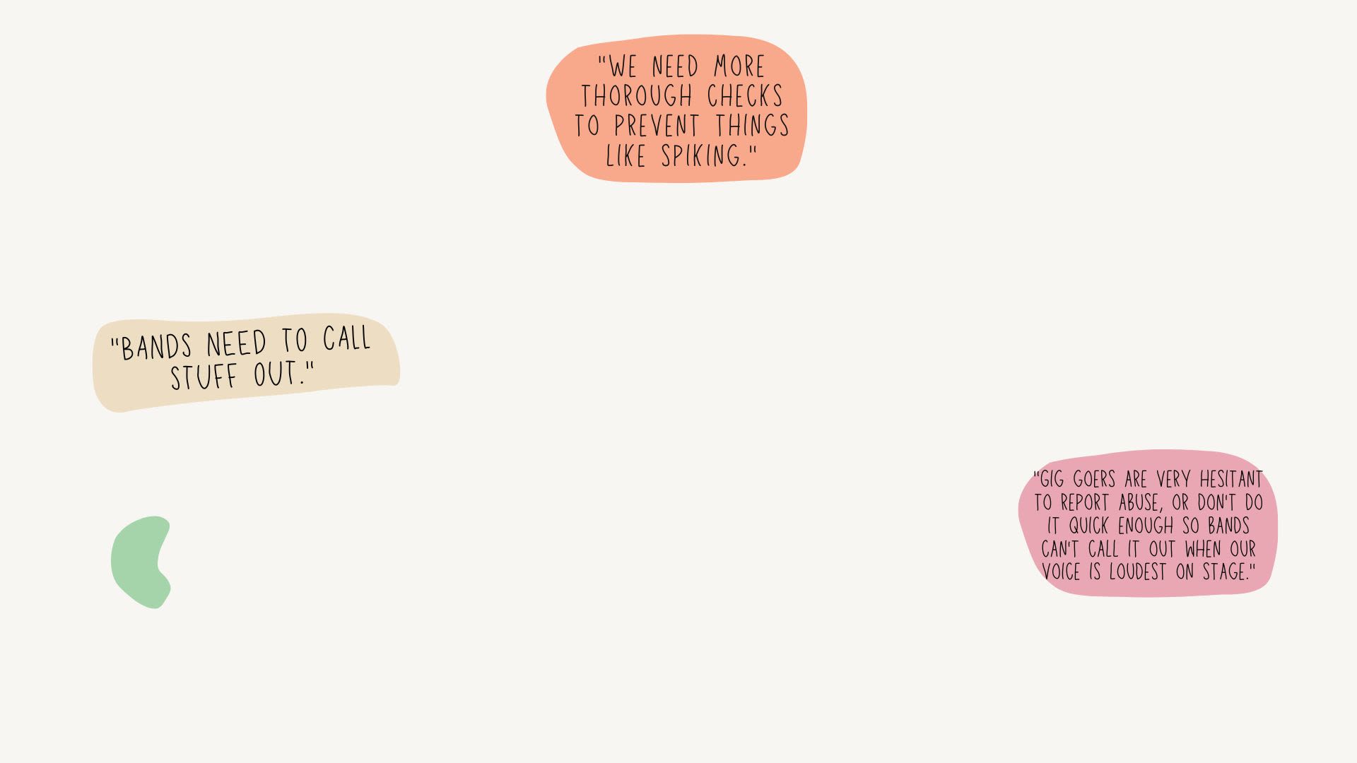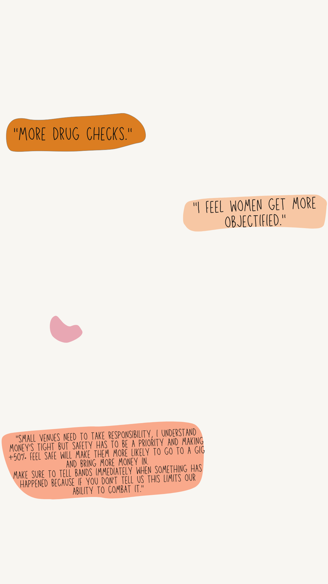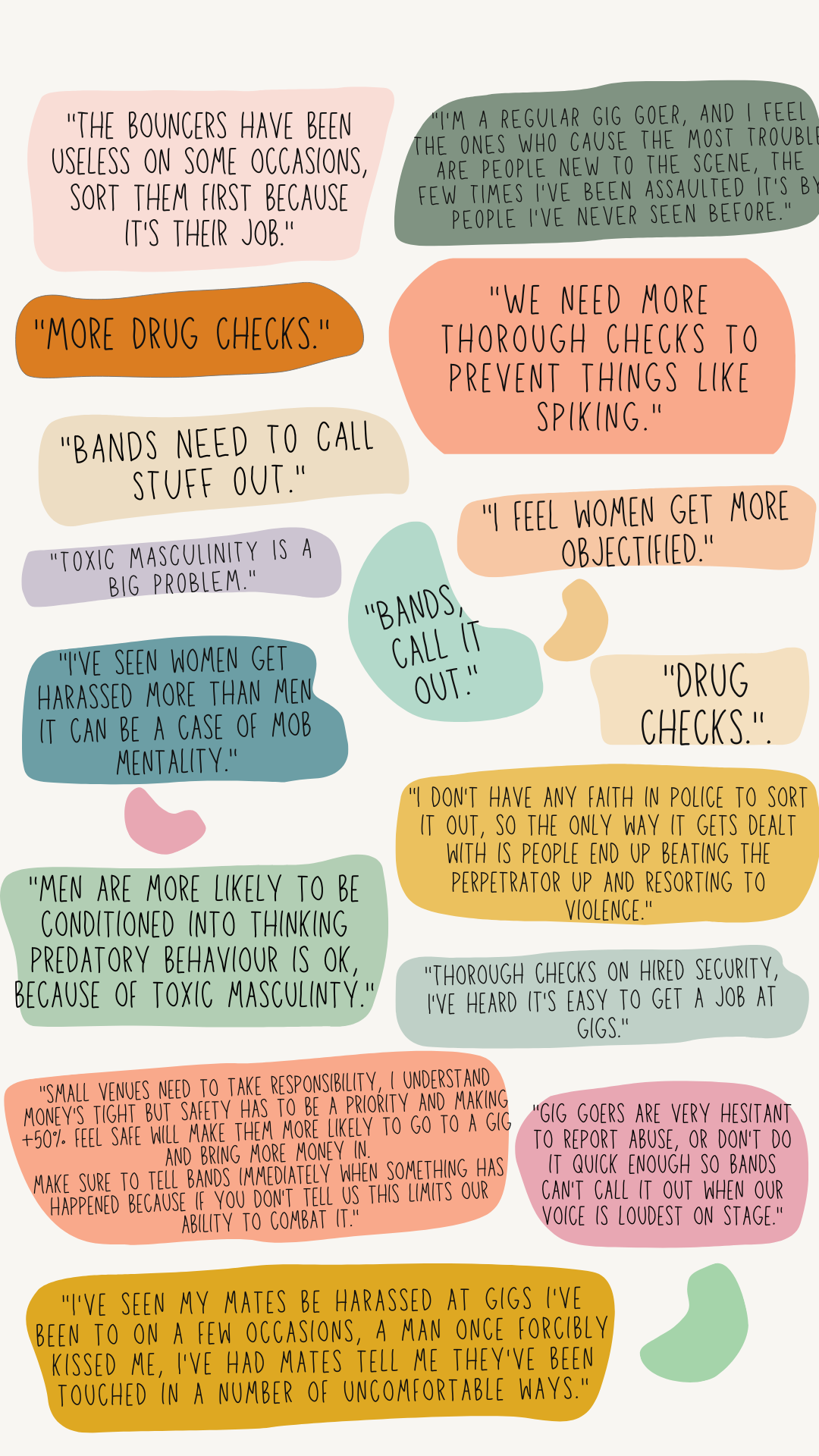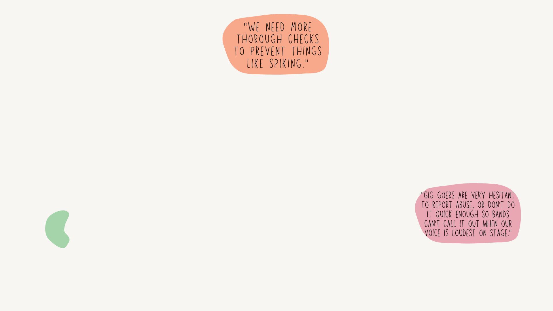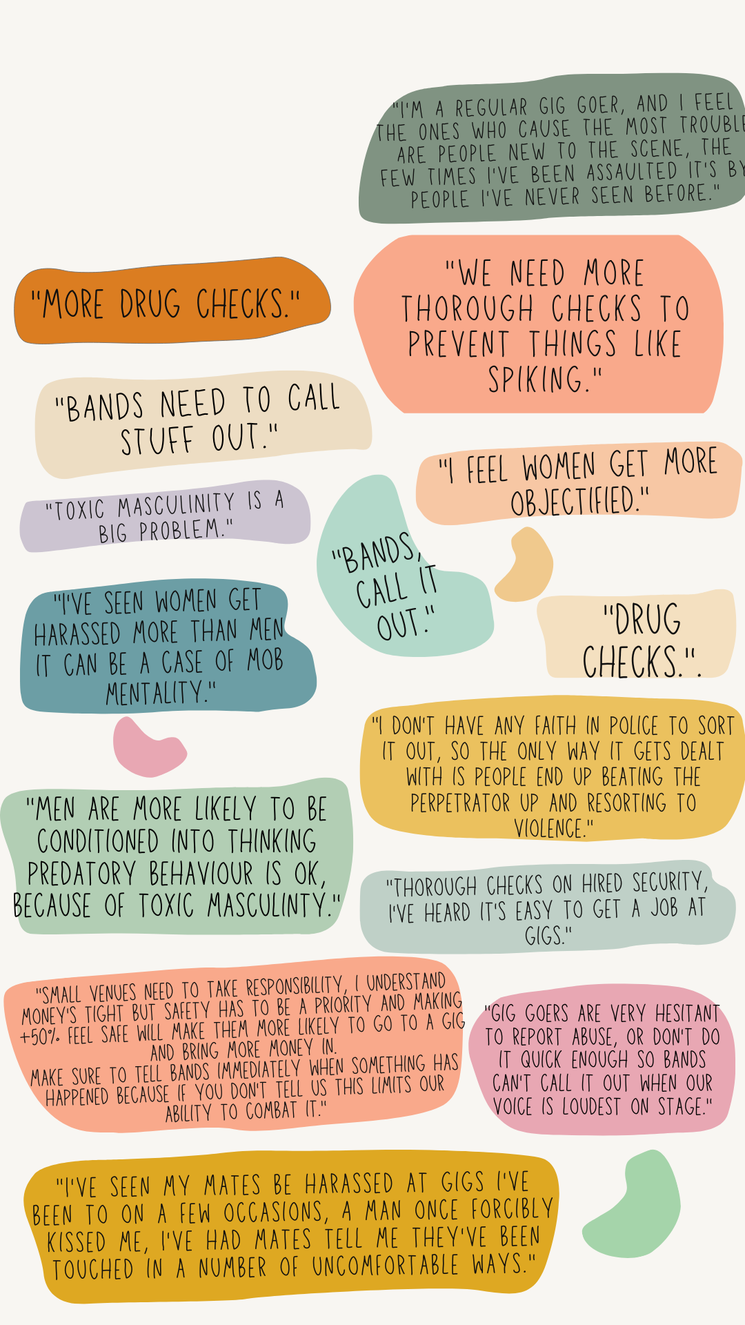 From my study, I also found that many gig goers don't feel safe at live music events, or feel that there is anything in place to protect them if something happened.
