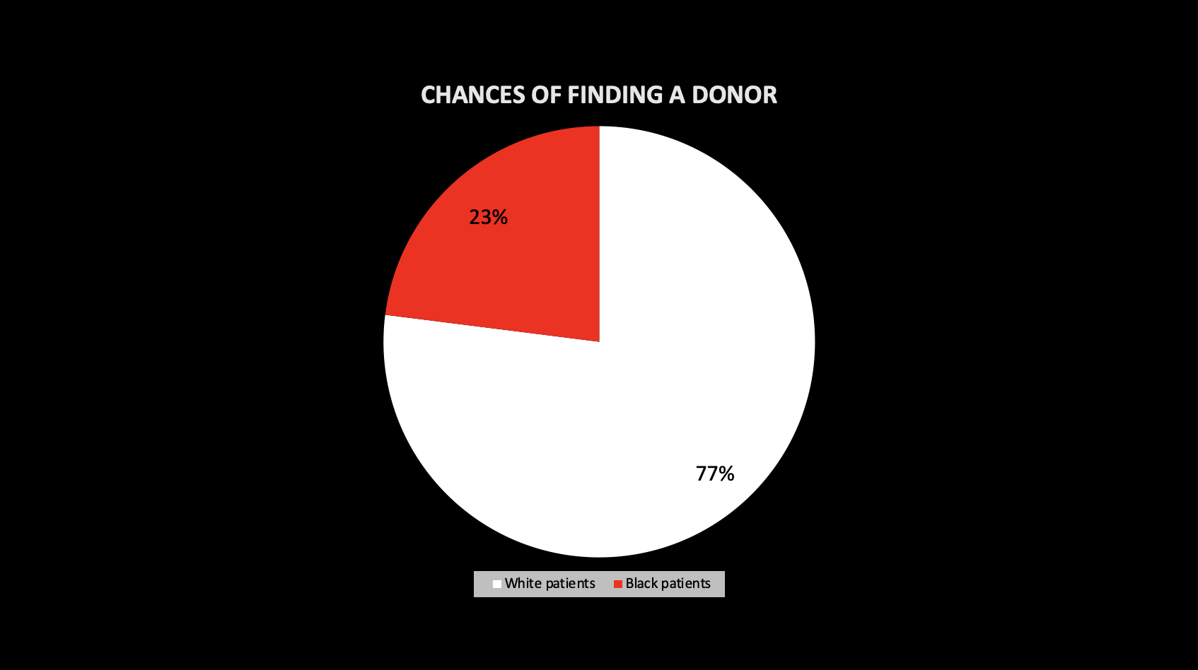 Black people come from the largest gene pool in the world, Africa. This meant that for black people needing donors, their chances were severely limited, because this kind of bone marrow type is so varied. For every one white Northern European person that was joining the bone marrow registry, black recipients needed 10 people to find their life saving match.