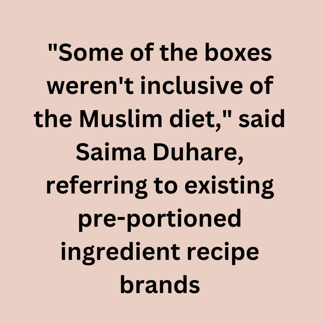 “Some of the boxes weren't inclusive of the Muslim diet”, said Saima referring to existing pre-portioned ingredient recipe brands. “The fact of the matter is that when you've got such a huge recipe box business that wants to monopolise the industry, you would then have that foresight to think. Okay, if the currency and the halal food industry is moving at such an exponential rate, wouldn't you want to capitalise on that?”