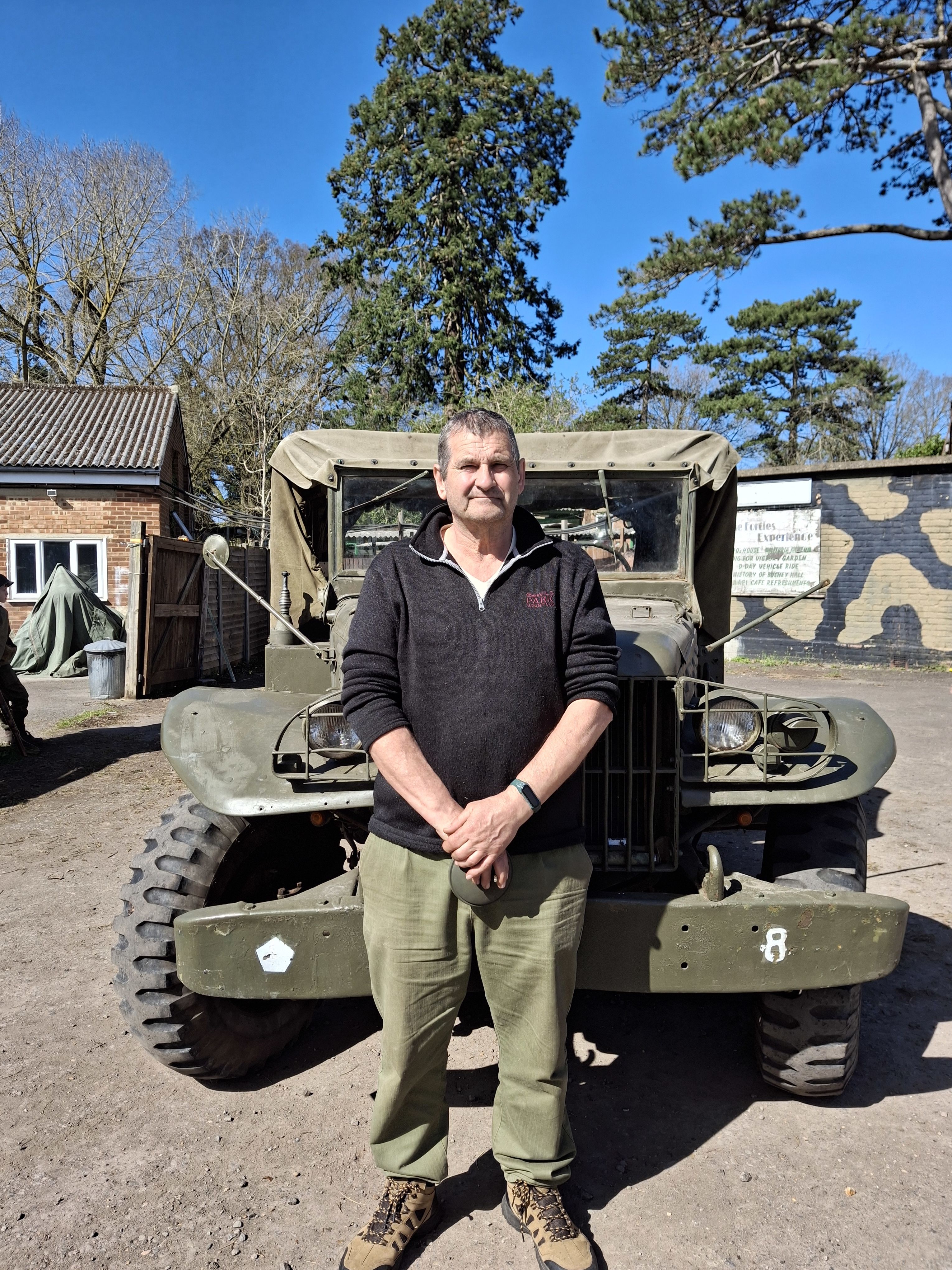 Phil Knight, standing in front of a Second World War-era jeep, often used to take visitors down to the immersive 'Blitz experience'. Photo: Izzie Addison.