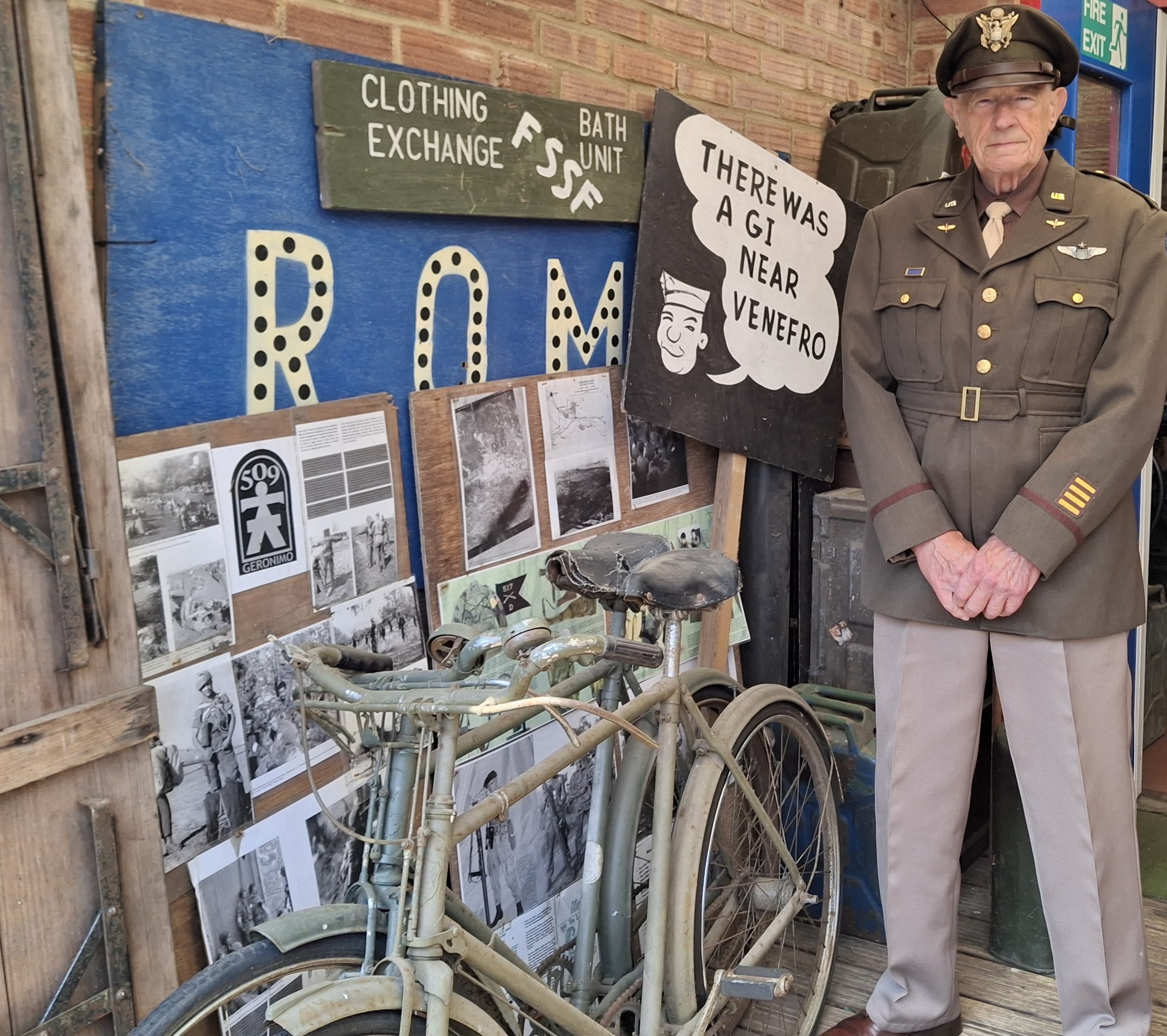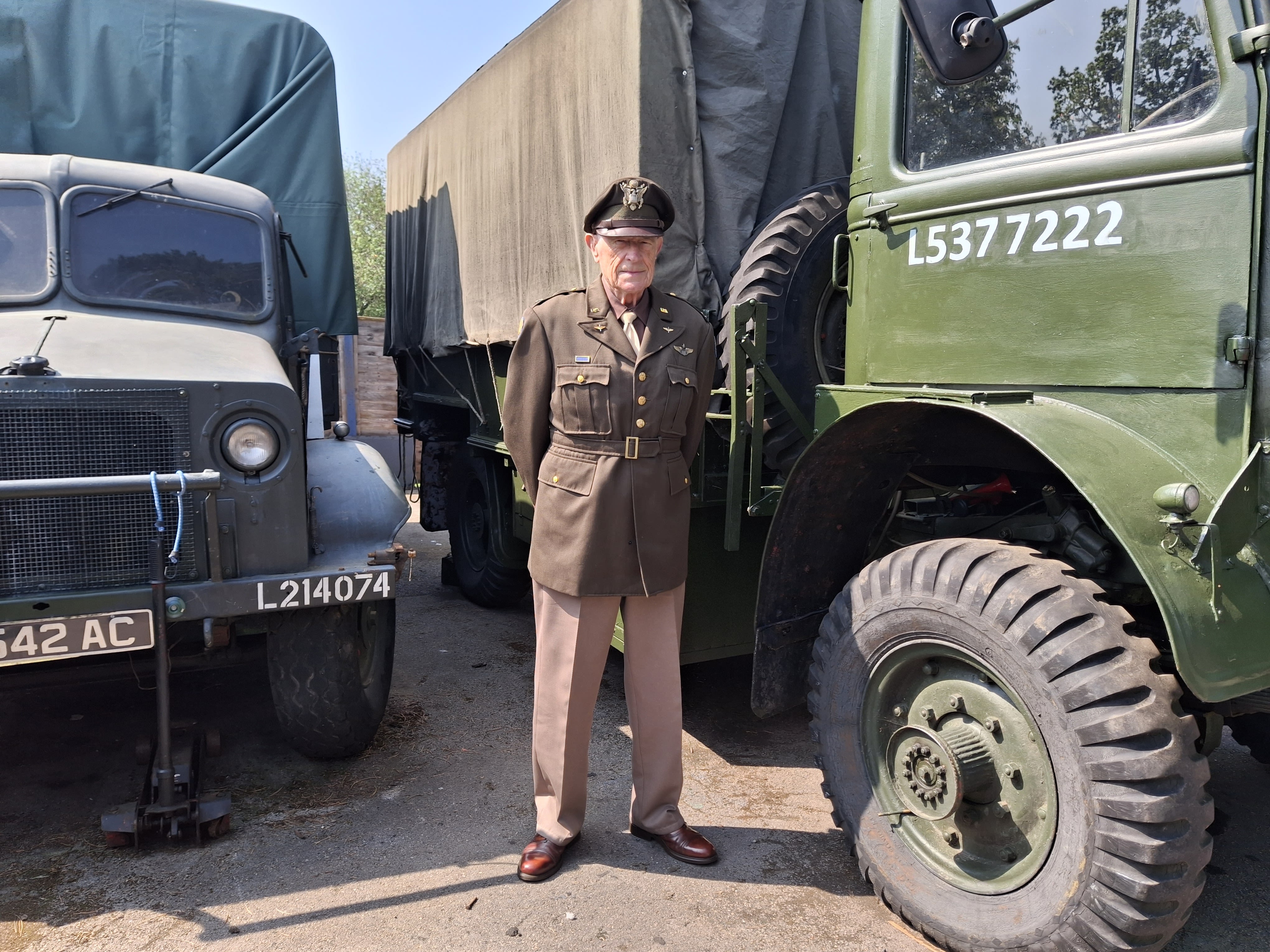 Derek Addison wearing the replica uniform of a senior US Army officer in the Second World War. Photo: Izzie Addison.