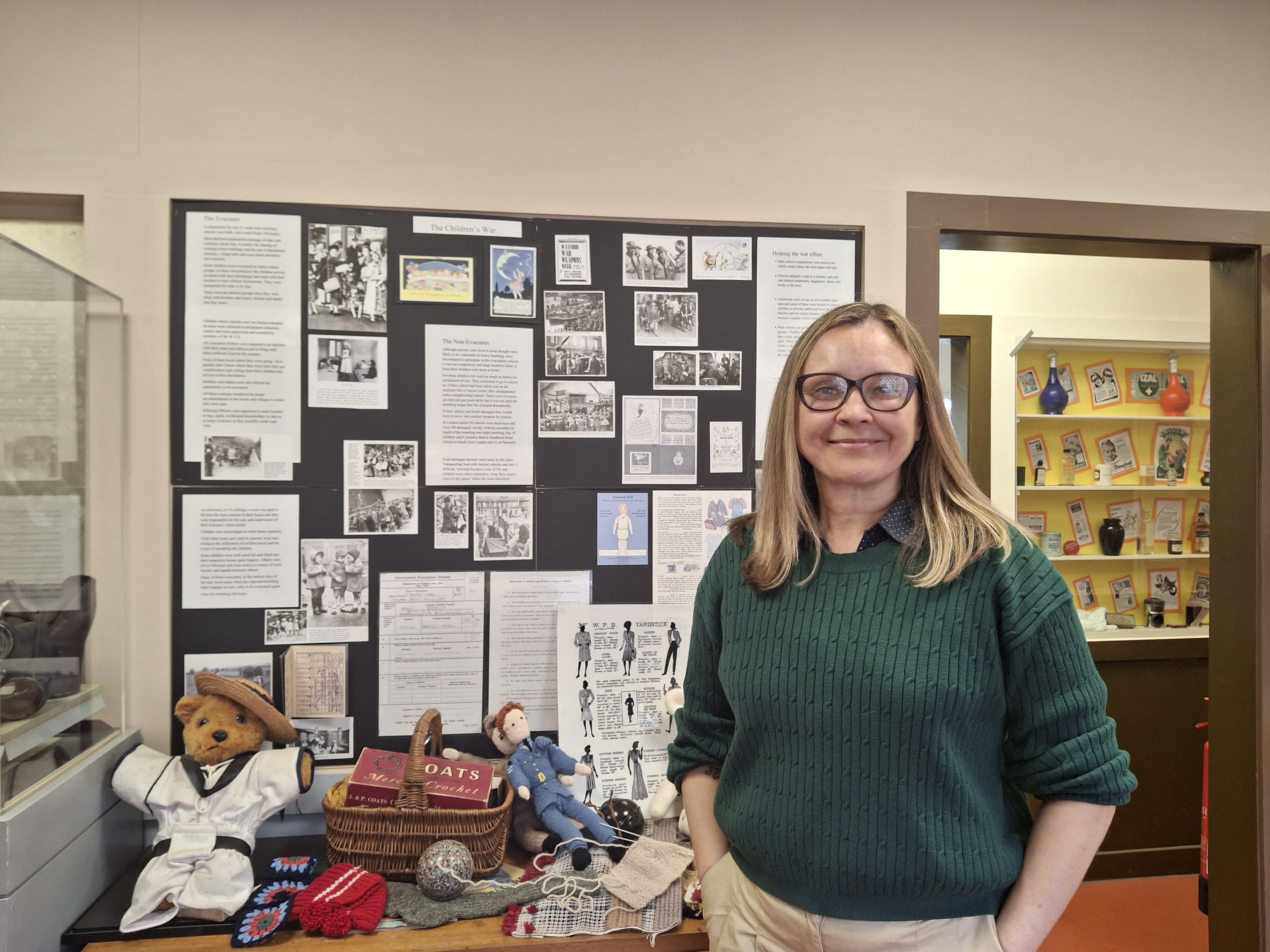 Rachel Martin standing in front of a collection of wartime children's toys at the Lincolnsfield Centre. Photo: Izzie Addison.